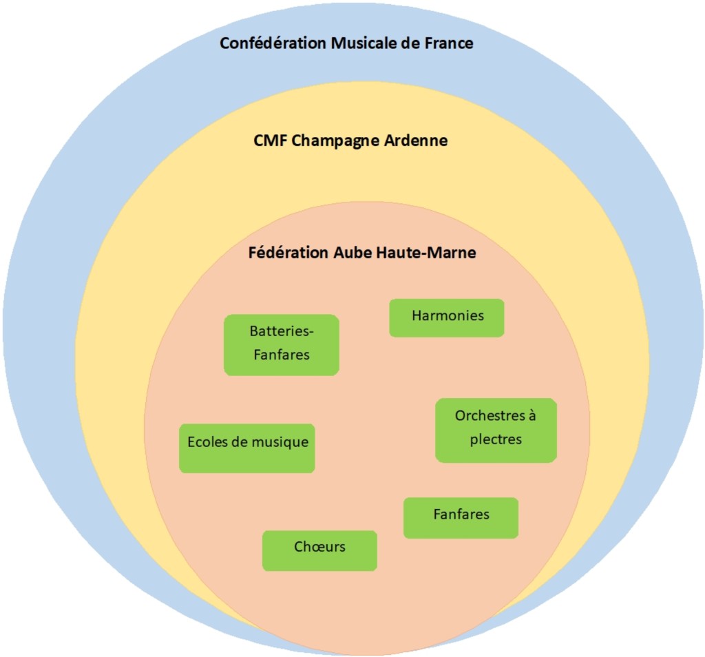 La « Fédération des Sociétés musicales de l’Aube » est créée en février 1906, puis transformée en « Fédération des Sociétés musicales de l’Aube et de la Haute-Marne » à partir de décembre 1923.